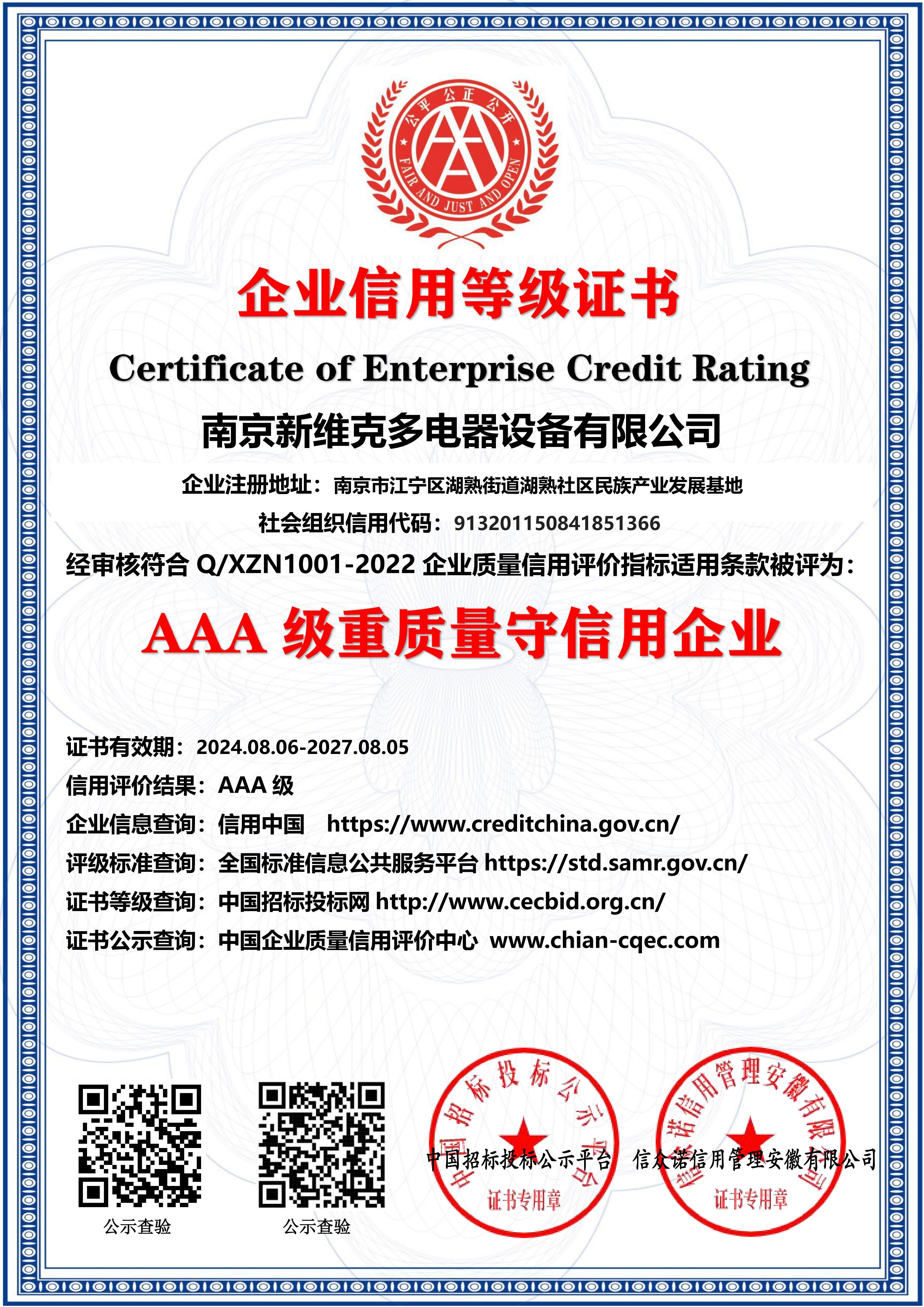 AAA级重质量守信用企业
